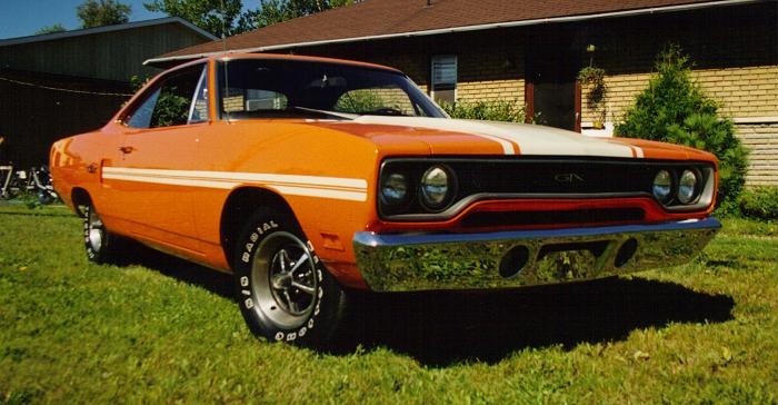Wolfgang Wetzel's 1970 GTX 440 4-Speed. This was another one of our own cars that one of our good friends took over. It is an original 440 4-spd car. We painted the stripes in pearl white, looks pretty cool up close. |